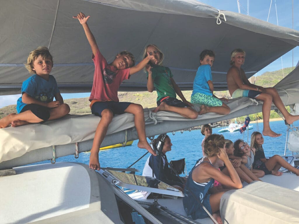 De voksne fandt deres sociale netværk blandt de lokale og blandt de andre sejlere, som de særligt i Fransk Polynesien sejlede rundt med i mange måneder i Stillehavets sejlerkollektiver. Det var også det selvsamme Stillehav, som stod for fritidsaktiviteter og agerede spisekammer hele vejen videre til Australien. Børnene snorklede, badede og samlede strandskaller, og menuen stod næsten hver dag på friskfanget fisk eller blæksprutte.