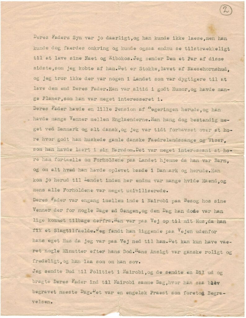 Brevet gengivet nedenfor slutter lidt abrupt på side 3. Fra efterkommere vides det, at side 4 inklusiv den berømte forfatters afskedshilsen, desværre er bortkommet.