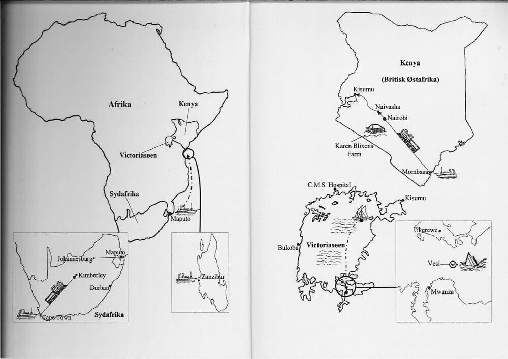 Han tænkte på det, han havde hørt på turen fra Mombasa. De mange blodige konflikter med indfødte, overfald fra vilde dyr, sygdomme og englændernes plan om at jage de indfødte ind i reservater væk fra de gode jorder, som skulle gives til de europæere, der ville slå sig ned som farmere, og som man allerede var begyndt at kalde The White Highlanders. Det var blevet køligt. Tusmørket havde for længst lagt sig. Han følte sig pludselig lille, ydmyg og sårbar, men efter en nats søvn ville det atter blive dag. Han havde hørt, at søen var fuld af flodheste.
