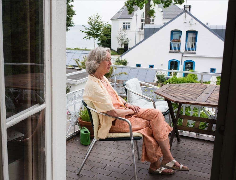 Fra terrassen på første sal er der udsigt til haven og det store, blå hav, hvor parret bader sammen hver morgen. Spejder man otte hundrede meter op ad vejen, kan man ikke længere få øje på pensionatet, hvor Mette Holm er vokset op.